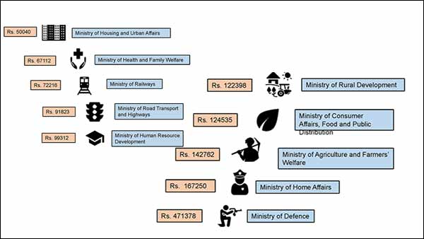 துறை வாரியாக மத்திய அமைச்சகங்களுக்கு இந்த பட்ஜெட்டில் எவ்வளவு ஒதுக்கப்பட்டுள்ளது என்பதை இப்போது பார்ப்போம்