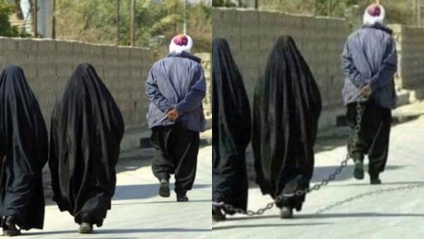 இப்படியாக புர்கா உடையணிந்த 3 பெண்கள் கால்களில் சங்கிலியால் கட்டப்பட்ட நிலையில் நடந்து செல்வது போலவும், அந்த பெண்களுக்கு முன்னால் நடந்து செல்லும் ஒரு மனிதன் அந்த சங்கிலியின் இன்னொரு முனையை கையில் பிடித்துக் கொண்டு செல்வது போலவும் சமூக வலைத்தளங்களில் ஒரு புகைப்படம் வைரலானது. இதுதான் தாலிபான்கள் ஆட்சிக்கு வந்த பிறகு பெண்கள் நிலை என்று அந்த புகைப்படத்தின் கீழே குறிப்பிடப்பட்டு இருந்தது.