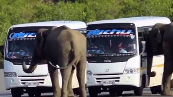 இந்த நிலையில், வனப்பகுதி வழியாக செல்லும் சாலையில் சென்று கொண்டிருக்கும் வேன் ஒன்றை வழிமறித்து அதை யானை இடித்து தள்ளும் ஒரு வீடியோ பதிவு சமூக வலைத்தளங்களில் வேகமாக பரவி வருகிறது. வெறும் 14 நொடிகளே ஓடக்கூடிய இந்த வீடியோவில், நெடுஞ்சாலை ஒன்றில் வேன் ஒன்று வந்து கொண்டிருக்கிறது. அப்போது திடீரென சாலையின் குறுக்கே வரும் யானை ஒன்று 'கொஞ்சம் நில்லுங்கப்பா நானும் வர்ரேன் என்பது போல' அந்த வேனை நிற்குமாறு தன் தும்பிக்கையால் பாவனை செய்கிறது.