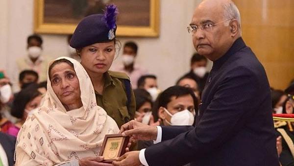 குடியரசுத் தலைவர் ராம்நாத் கோவிந்திடம் இருந்து விருதைப் பெற்றுக்கொண்ட சாரா பேகம், அங்கிருந்த மூத்த அமைச்சர்களைப் பார்த்து வணக்கம் தெரிவித்தார். அங்கிருந்த பாதுகாப்பு அமைச்சர் ராஜ்நாத் சிங், உணர்ச்சிவசப்பட்ட தாயாருக்கு அறுதல் கூறினார். இந்த வீடியோவை தற்போது பலரும் இணையத்தில் பகிர்ந்து வருகின்றனர்.