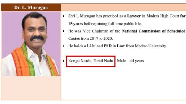 "கொங்கு நாடு.." பரபரப்பை கிளப்பிய எல்.முருகன் பயோ டேட்டா! விளக்கம் அளிக்குமா மத்திய அரசு?