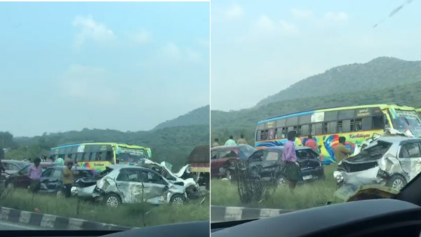 அந்த நேரத்தில் சாலையின் வலது பக்கத்தில் வந்து கொண்டிருந்த பத்துக்கும் மேற்பட்ட வாகனங்கள், கார்களை லாரியின் கண்டெய்னர் பகுதி மோதி நசுக்கியது. இந்த பயங்கர விபத்தில் வாகனங்கள் உருக்குலைந்தன. கார்களில் இருந்தவர்கள் உடல் நசுங்கி சம்பவ இடத்திலேயே உயிரிழந்தனர்.
