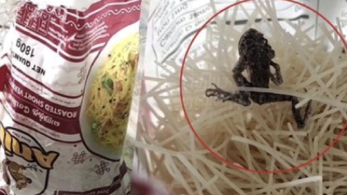 ஹோட்டல்களில் சாப்பிடும்போது புழு, பல்லி, எலி எல்லாம் கூட சாம்பாரில், பிரியாணியில் இருப்பதை பார்த்து அதை போட்டோ வீடியோ எடுத்து போடுவார்கள். இப்போது அணில் சேமியா பாக்கெட்டில் தவளை இருந்த சம்பவம் அதிர்ச்சியடைய வைத்துள்ளது. சிவகங்கை மாவட்டம் தேவகோட்டை அருகே மளிகைக்கடையில் வாடிக்கையாளர் ஒருவர் வாங்கிய சேமியா பாக்கெட்டில் இறந்து காய்ந்து பபோன நிலையில் தவளை இருந்துள்ளது.