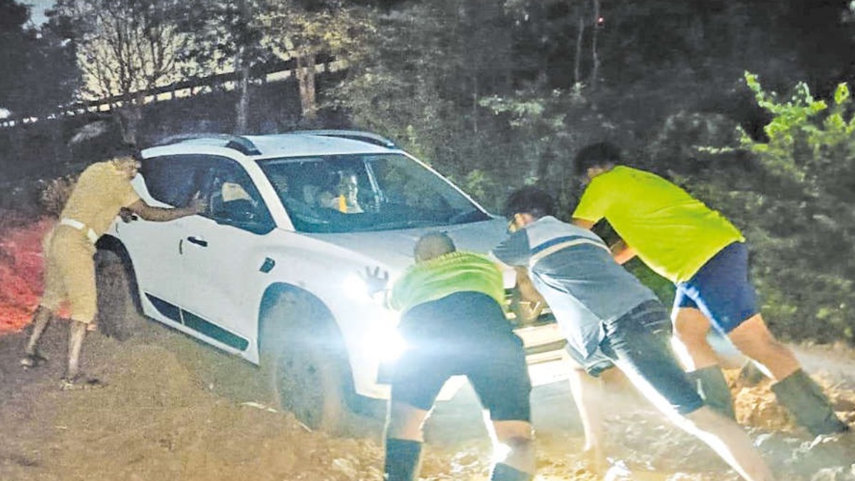 இதில் கூகுள் மேப்ஸ் 4 வழிச்சாலையை காண்பிக்காமல், குறுக்கு வழியினை காண்பித்ததாக தெரிகிறது. இதனால் பாவேந்தரும் அந்த மண் சாலையில் காரை திருப்பியுள்ளார். கார் அந்த மண் சாலையில் சென்று கொண்டிருந்தது. மழை நேரம் என்பதால் சேறும் சகதியுமாக இருந்தது. சிறிது தூரம் சென்ற பின்னர் சேற்றில் கார் சிக்கிக்கொண்டது. எவ்வளவு முயற்சித்தும் இருந்த இடத்தை விட்டு ஒரு இன்ச் கூட கார் நகரவில்லை.