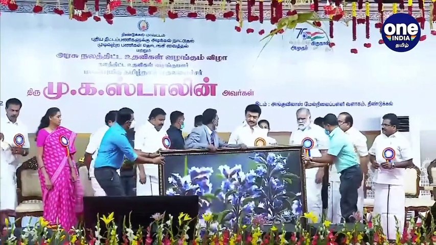 முதலமைச்சராக பொறுப்பேற்ற பிறகு முதல்முறையாக நேற்று திண்டுக்கல் மாவட்டத்திற்கு வருகை புரிந்த முதலமைச்சர் ஸ்டாலின் பல கோடி ரூபாய் மதிப்பிலான நலத்திட்ட உதவிகளை தொடங்கிவைத்து அரசின் திட்டப்பணிகளை ஆய்வு செய்தார். அந்த நிகழ்ச்சியை முடித்துக்கொண்டு அவர் சென்னை புறப்படுவதற்கு முன்னர் திண்டுக்கல் மாவட்ட நிர்வாகம் சார்பில் குறிஞ்சி மலர் ஓவியம் ஒன்று நினைவுப்பரிசாக முதல்வருக்கு வழங்கப்பட்டது.