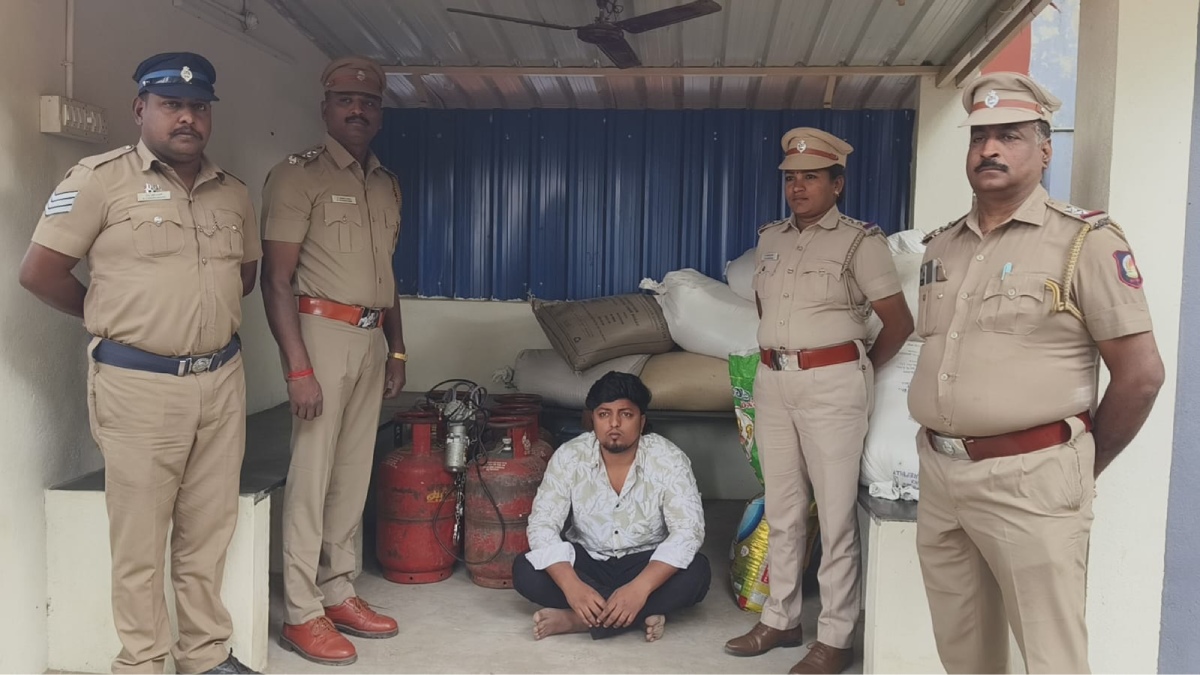 இதனையடுத்து முகமது சௌஹான் சேட்டை கைது செய்து அவரிடமிருந்து சுமார் 1000 கிலோ ரேஷன் அரிசி, 6 சிலிண்டர்கள், சிலிண்டர் ஏற்ற பயன்படுத்தும் பம்ப் மற்றும் கார் ஆகியவை பறிமுதல் செய்யப்பட்டுள்ளது. இது குறித்த காவல்துறையினர் விசாரணை மேற்கொண்ட போது இச்சம்பவத்தில் ரவுடி கும்பல் ஈடுபட்டு இருப்பது தெரியவந்துள்ளது.