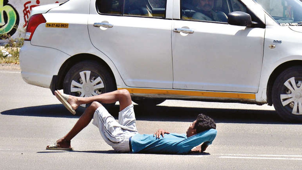 திண்டுக்கல் தம்பிக்கு உடம்பெல்லாம் மூளை.. நடுரோட்டில் மல்லாந்து படுத்து என்ன செய்கிறார் என்று பாருங்க