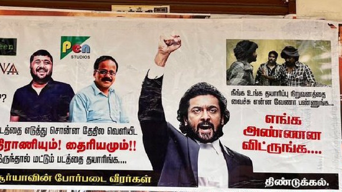 இந்த நிலையில் ஞானவேல் ராஜாவுக்கு கண்டனம் தெரிவித்து தமிழகத்தின் பல்வேறு பகுதிகளில் போஸ்டர்கள் ஒட்டப்பட்டு இருக்கின்றன. சூர்யா நடித்து வெற்றி பெற்ற படங்கள் ஓடிடியில் மட்டும் தான் வெளியானது. கடைசியாக அவர் நடித்திருந்த ’எதற்கும் துணிந்தவன்’ படம் 2022-ல் வெளியான நிலையில் அந்த படம் தோல்வி படமாகவே கருதப்படுகிறது. அதற்குப் பிறகு சிறப்பு தோற்றங்களில் மட்டுமே சூர்யா நடித்திருக்கிறார்.