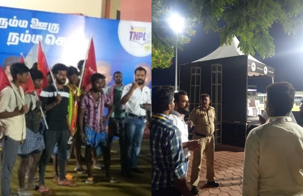 நத்தம் பகுதி கிராமங்களை பற்றி மிகக் கேவலமான முறையில் கேலி செய்ததை அறிந்த நாம் தமிழர் கட்சியின் மாநில கொள்கை பரப்புச் செயலாளர் நத்தம் சிவசங்கரன் தலைமையில் நாம் தமிழர் கட்சியினர் நிகழ்வு நடைபெற்ற இடத்திற்கு சென்று முற்றுகையிட்டனர். அவர்கள் முற்றுகையிட்டதை தொடர்ந்து காவல்துறை , நிர்வாகத்திற்கும் நாம் தமிழர் கட்சியினருக்கும் இடையே பேச்சு வார்த்தை நடத்தி நிகழ்ச்சி வர்ணனையாளரை காவல்துறை மற்றும் TNPL நிர்வாகம் நிகழ்ச்சி தொகுக்கும் இடத்தில் இருந்து வெளியேற்றினார்கள்.. அதன் பின் தவறை உணர்ந்த நிகழ்ச்சி வர்ணனையாளர் தனது தவறுக்கான மன்னிப்பை கூறியதை அடுத்து போராட்டம் கைவிடப்பட்டது.