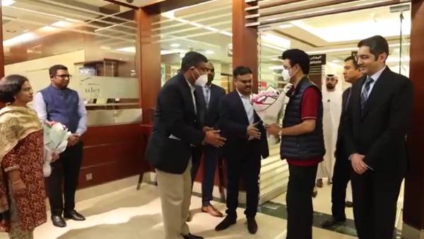 துபாய்: தொழில்துறையினர் முதலீடுகளை ஈர்க்க துபாய் சென்றுள்ள முதல்வர் ஸ்டாலினை இந்தியத் தூதர் அமன் பூரி மற்றும் அந்நாட்டின் தொழில்துறையினர் விமான நிலையத்திலேயே வரவேற்றனர்.