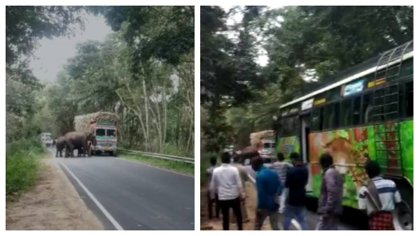 ஹலோ கரும்பு குடுங்க பாஸு.. இன்னிக்கு எங்களுக்கு ஃபங்சன்! யானைகள் தினத்தில் லாரியை மறித்த யானைகள்!