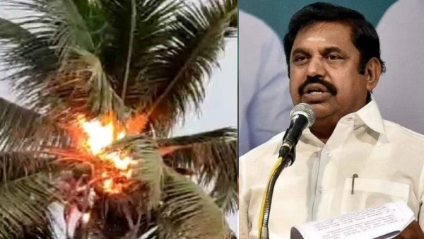 எடப்பாடி பழனிசாமி பிரசாரத்தின் போது திடீரென இப்படி தென்னை மரம் தீ பிடித்து எரிந்த சம்பவம் பெரும் பரபரப்பை ஏற்படுத்தியுள்ளது. முன்னதாக நேற்று தேர்தல் பிரசாரத்தில் பேசிய எடப்பாடி பழனிசாமி, "திமுக ஆட்சிக்கு ஆபத்து வருமோ என்று அவர்கள் அஞ்சுகிறார்கள். இதன் காரணமாகவே இதுவரை எட்டிப் பார்க்காத திமுக அமைச்சர்கள் கூட இப்போது ஈரோடு கிழக்கிற்கு வந்துள்ளனர். ஆனாலும், மக்கள் இதை கண்டு எல்லாம் ஏமாற மாட்டார்கள்.