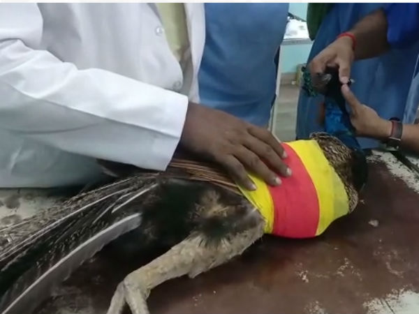 நாய் கடித்து இறக்கை இழந்த மயிலுக்கு 2 மணி நேரம் ஆபரேஷன் நடந்தது.
