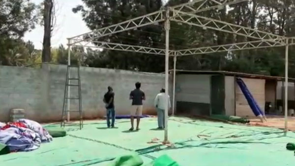 இன்று நிகழ்ச்சி நடத்த திட்டமிட்டு நேற்று மாலை பந்தல் அமைக்கும் பணிகளில் தொழிலாளர்கள் முழு வீச்சில் ஈடுபட்டிருந்தனர்.