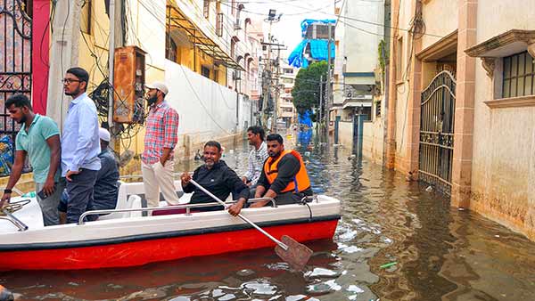 ஹைதராபாத்தில் வரலாறு காணாத கனமழை கொட்டியதால் சாலைகளில் காட்டாறு போல மழைவெள்ளம் பாய்ந்தோடியது. ஹைதராபாத் நகரின் பல பகுதிகளில் வெள்ள நீர் சூழ்ந்தது. ராணுவத்தினர் பல இடங்களில் மீட்புப் பணியில் ஈடுபட்டனர்.