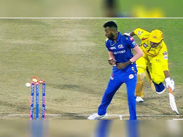 நான்காவது விக்கெட்டுக்கு, வாட்சனுடன், அணித் தலைவர் தோனி ஜோடி சேர்ந்தார். ஆட்டம் எந்த திசையில் சென்றாலும், அதை தனது அணிக்காக, திருப்ப கூடிய திறமை பெற்றவர் தோனி என்பதால், அவர் களத்தில் நிற்கும் ஒவ்வொரு நிமிடமும் எதிரணிக்கு ஆபத்து என்பதை ரசிகர்கள் உணர்ந்து கரகோசம் எழுப்பியபடி இருந்தனர். மைதானமே தோனி.. தோனி என உணர்ச்சி பெருக்குடன் கோஷமிட்டுக் கொண்டிருந்தது. தோனியும், ஒரு பெரிய இன்னிங்ஸ் ஆடுவதற்கான முன்னெச்சரிக்கையோடு முதல் சில பந்துகளை சந்தித்தார். ஆனால், தோனி, 2 ரன்கள் எடுத்து இருந்தபோது ஓவர் த்ரோவை பயன்படுத்தி 2 ரன்கள் ஓட முற்பட்டார். அப்போது, லாங் ஆப் திசையில் பந்தை பிடித்த இளம் வீரர் இஷான் கிஷன், சரியாக குறி வைத்து, நேராக ஸ்டம்ப்பில் எறிந்தார்.