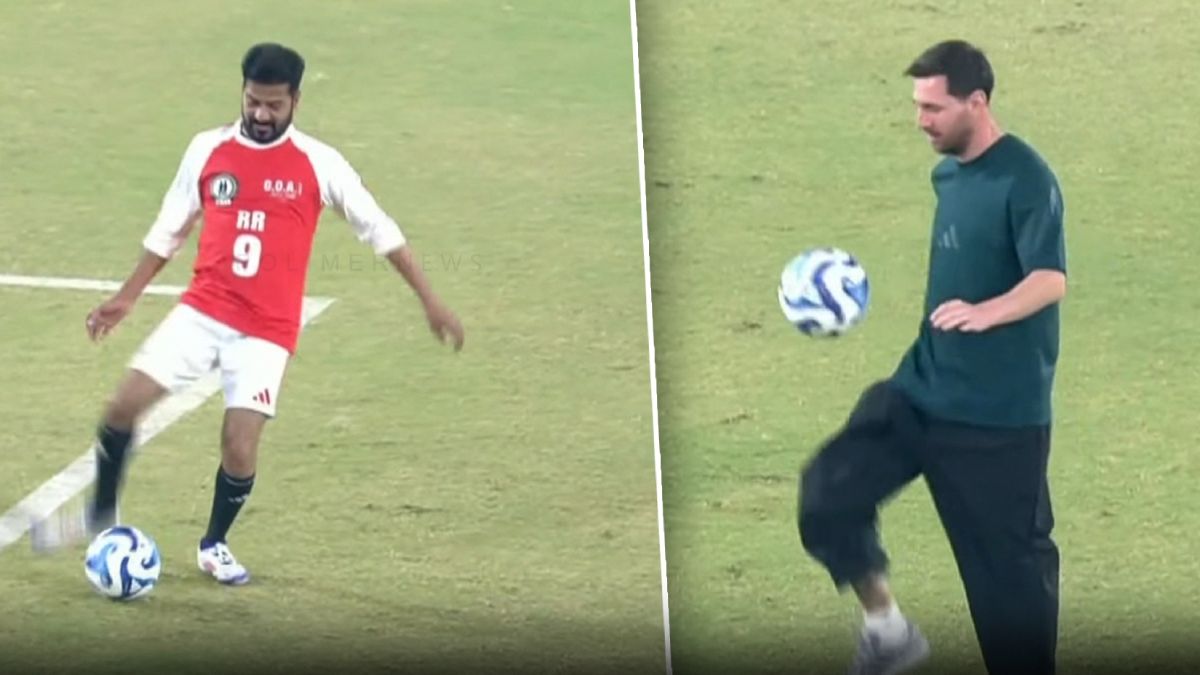 கோல் அடித்த மெஸ்ஸி - ரேவந்த் ரெட்டி.. ஹைதராபாத்தில் பறந்த ரசிகர்கள் விசில்!