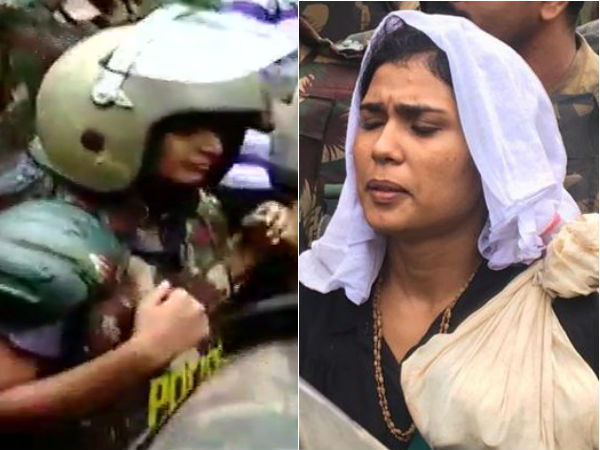 இருவருக்கும் கிட்டத்தட்ட 200 போலீஸார் பாதுகாப்புக் கொடுத்து, கவச உடை, துப்பாக்கி சகிதம் பாதுகாப்பு கொடுத்து அழைத்து வந்தனர். பம்பையிலிருந்து இவர்கள் சன்னிதானம் வந்தனர். நடைப்பந்தல் வரை வந்து விட்ட இவர்கள் அங்கிருந்து 10 நிமிட தூரத்தில் உள்ள 18ம் படியை அடைந்து கோவிலுக்குச் செல்ல வேண்டும்.