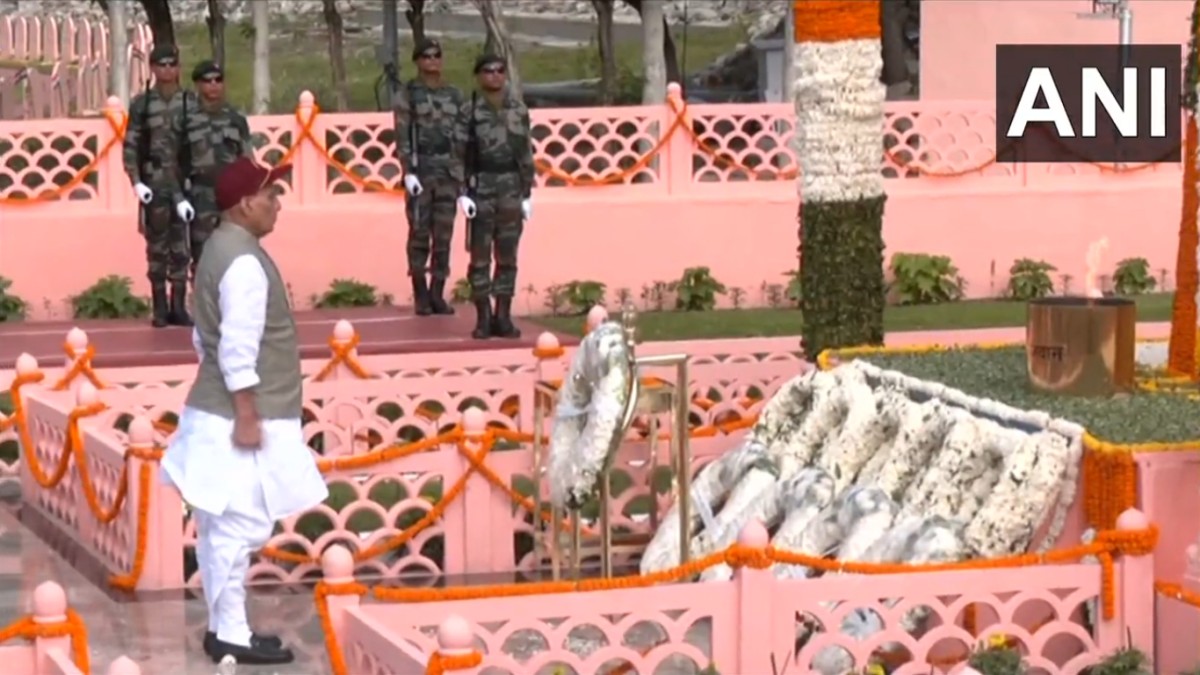 #WATCH | Defence Minister Rajnath Singh lays a wreath at Kargil War Memorial in Drass and pays tribute to soldiers who lost their lives in the 1999 Kargil War. #KargilVijayDiwas pic.twitter.com/Ev9ZwyMVJa