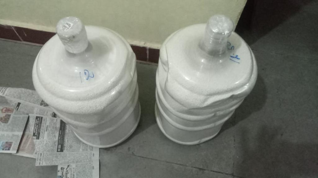 பின்னர் மரைன் காவல் நிலையத்தில் வெள்ளை பவுடர் அடைக்கபட்ட 30 தண்ணீர் கேன்கள், விசாரணைக்காக அழைத்து வரப்பட்ட இருவர் மற்றும் காரை மேல் நடவடிக்கைக்காக மண்டபம் சுங்கத் துறையினரிடம் மரைன் போலீசார் ஒப்படைத்தனர்.