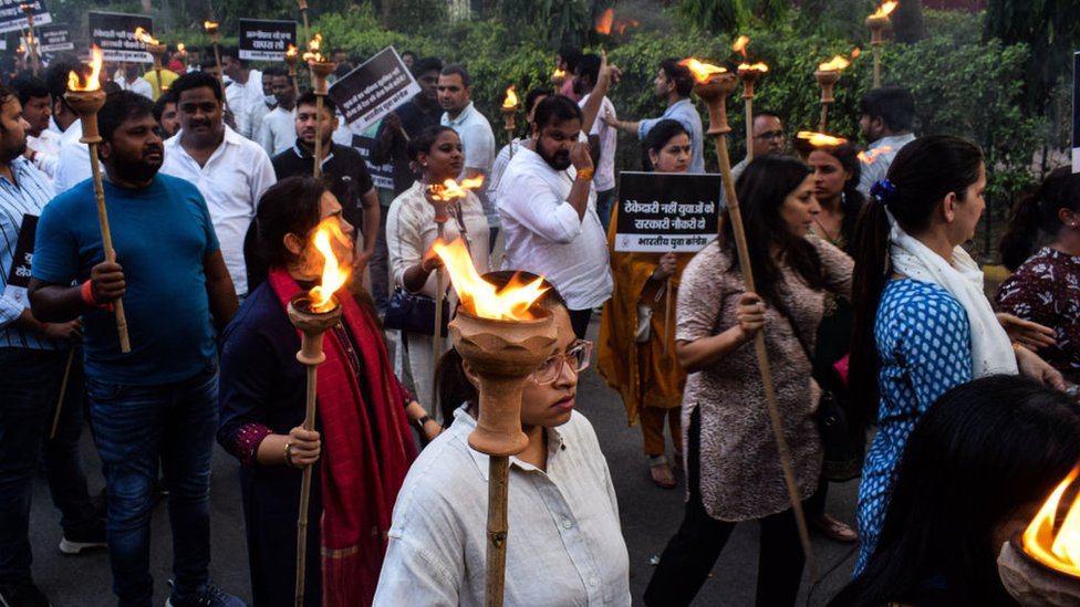 பிகார் மாநிலம் பெகுசாராய் மாவட்டத்தில் போராட்டத்தில் ஈடுபட்ட இளைஞர்கள் ரயில் தண்டவாளத்தின் நடுவே அமர்ந்து போராட்டத்தில் ஈடுபட்டதால் ரயில் போக்குவரத்து பாதிக்கப்பட்டது. மேலும், போராட்டக்காரர்கள் டயர் ஒன்றையும் தண்டவாளத்தில் வைத்து எரித்துள்ளனர்.