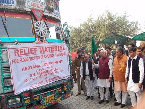 இதுதவிர, போர்வை உள்ளிட்ட நிவாரணப் பொருள்கள் அடங்கிய லாரியை அந்த மாநில முதல்வர் மனோகர் லால் கட்டர், பானிபட்டில் இருந்து நேற்று கொடியசைத்து அனுப்பி வைத்தார்.