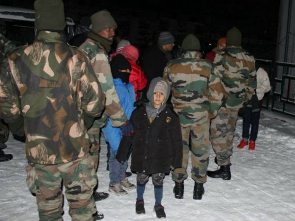 இது குறித்து ராணுவத்துக்கு தகவல் அளிக்கப்பட, அதிரடியாக களத்தில் குதித்த ராணுவ வீரர்கள், சுற்றுலா பயணிகளை மீட்கும் பணியில் இறங்கினர். நவீன எந்திரங்கள் மூலம் சாலையில் இருந்த பனித்துகள்களை அகற்றிய அவர்கள், பின்னர் சுற்றுலா பயணிகளை முகாம்களுக்கு அழைத்து சென்றனர்.