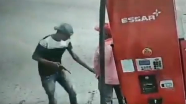 பெட்ரோல் போடுவது போல் வந்த நபர்.. துப்பாக்கி முனையில் ஊழியரிடம் கொள்ளை.. அதிர்ச்சி வீடியோ