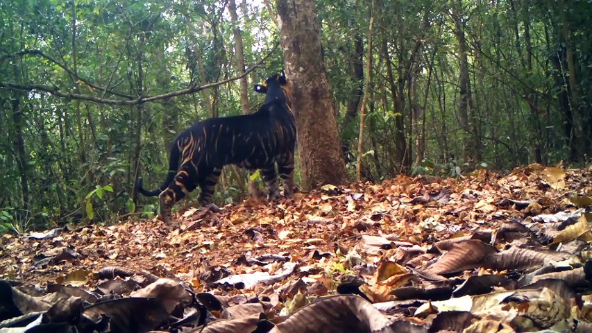 உண்மையில் இது ஒரு புலி ஆகும். வனத்துறை அதிகாரி சுஷாந்த நந்தா இந்த வீடியோவை இணையத்தில் பகிர்ந்து உள்ளார். இது சிமிலிபால் காட்டுப்பகுதியில் ஒடிசாவில் காணப்படும் கருப்பு நிற புலி ஆகும். இதன் உடல் முழுக்க கருப்பு நிறத்தில் இருக்கும். கோடுகள் மட்டும் அடர் சிவப்பு நிறத்தில் காணப்படும். சில கோடுகள் தங்க நிறத்திலும் காணப்படும். இது மிக மிக அரிதான வகையை சேர்ந்த புலிகள் ஆகும். இதன் செல்களில் ஏற்படும் மாற்றம்தான் இந்த நிற மாற்றத்திற்கு காரணம் என்று கூறப்படுகிறது.