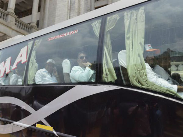 பேருந்தில் வருவதால், இன்னும் சில 2 மணி நேரத்தில் மஜத எம்எல்ஏக்கள் அதே பகுதிக்கு வந்து விடுவார்கள். ஒரு இரவு முழுக்க பாஜகவிற்கு பயந்து இவர்கள் ஊர் ஊராக சுற்றியுள்ளனர். இவர்கள் மொத்தம் சர்மா டிராவல்ஸ், ஆரஞ்ச் டிராவல்ஸ், எஸ்ஆர்எஸ் டிராவல்ஸ் ஆகிய 3 பேருந்துகளில் வந்து இருக்கிறார்கள். இவர்கள் பேருந்திற்கு முன்னும் பின்னும் மொத்தம் 7 கார் பாதுகாப்பிற்கு சென்றுள்ளது. பாஜகவினர் பிரச்சனை செய்ய கூடாது என்பதால் இப்படி செய்துள்ளனர்.