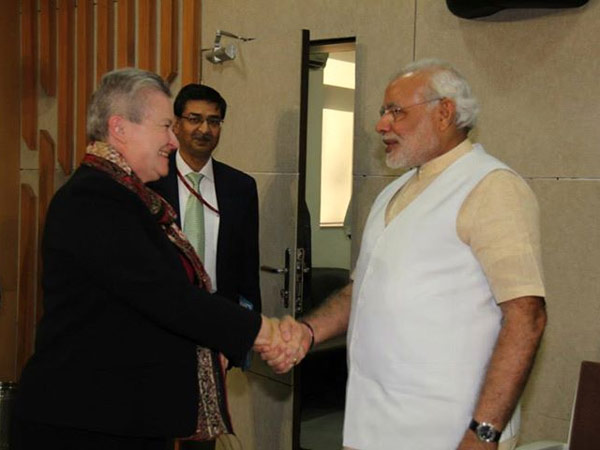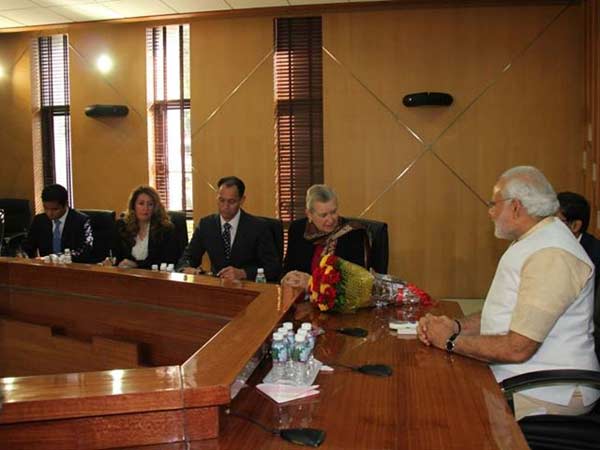 இதனை ஏற்று இன்று குஜராத்தின் காந்திநகரில் நரேந்திர மோடியை நான்சி பாவெல் சந்தித்துப் பேசினார். இந்த சந்திப்பின் மூலமாக அமெரிக்கா கடைபிடித்து வந்த மோடி புறக்கணிப்பு முடிவுக்கு வந்தது.