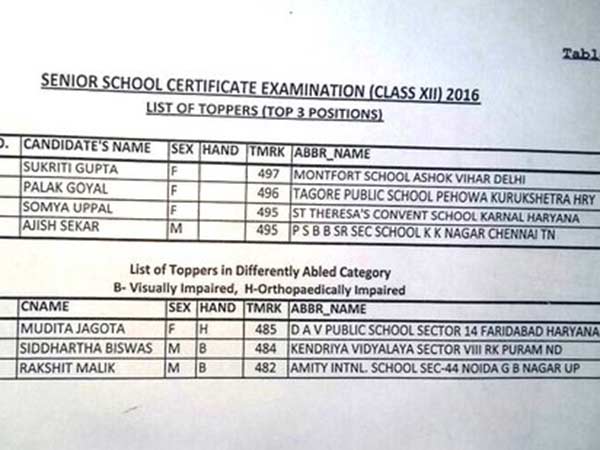 சிபிஎஸ்இ: டெல்லி மாணவி சுக்ரிதி குப்தா முதலிடம்- சென்னை மாணவர் அஜிஸ் சேகர் 3-வது இடம்