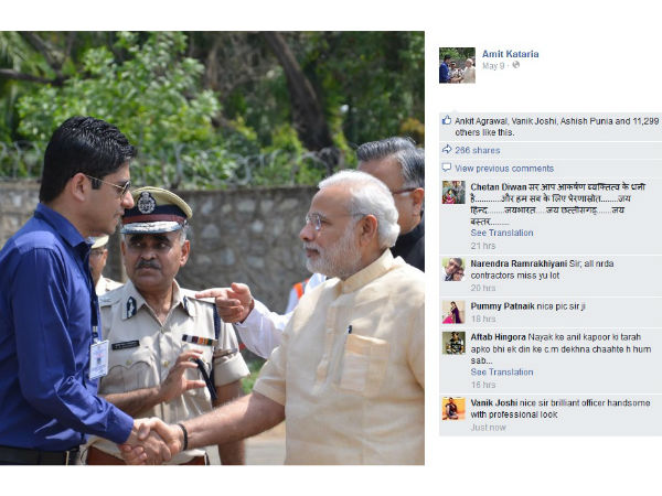 அப்போது கலெக்டர் அமீத் கட்டாரியா, பிரதமருக்கு கை குலுக்கினார். அவரைப் பார்த்த பிரதமர், வாங்க "தபாங்" கலெக்டர் நல்லாயிருக்கீங்களா என்று சிரித்தபடி கேட்டார்.