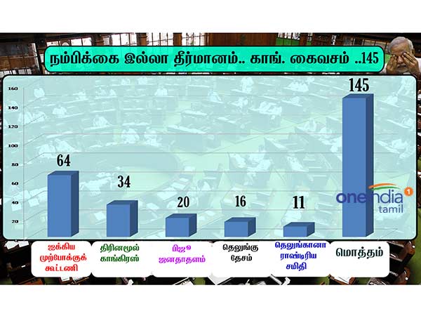 அதன்படி இன்று காலை 11 மணிக்கு விவாதம் தொடங்கி பின்னர், வாக்கெடுப்பு நடைபெற உள்ளது. இதில், 266 எம்.பி.க்கள் ஆதரவு இருந்தால் பாஜக ஆட்சியை தக்க வைக்க முடியும். பாஜக மற்றும் கூட்டணி கட்சிகளின் பலம் 312 ஆக உள்ளது. எனவே நம்பிக்கை வாக்கெடுப்பில் மோடி அரசு வெற்றி பெறுவது உறுதியாகிவிட்டது.