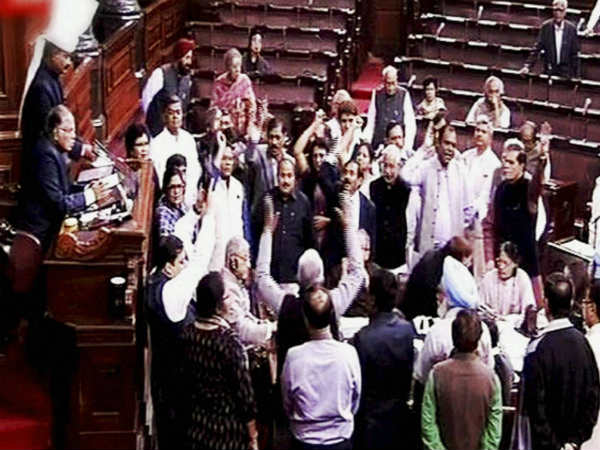 இதே போன்று மாநிலங்களவையிலும் எதிர்க்கட்சியினர் அமளியில் ஈடுபட்டதால் அவை 12 மணி வரை ஒத்தி வைக்கப்பட்டது.