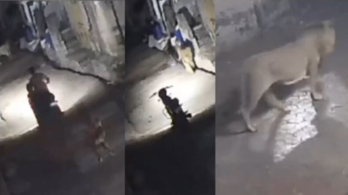 பிறகு, மெதுவாக, அந்த தெருவில் அது பாட்டுக்கு நடந்து சென்றது.. இந்த காட்சிதான், அங்கிருந்த சிசிடிவி காட்சியில் பதிவாகியிருக்கிறது. அந்த தம்பதியினரை சிங்கம் எதுவுமே செய்யவில்லை, பார்ப்பதற்கும் அமைதியாக காணப்படுகிறது. அந்த சிசிடிவி வீடியோவில் உற்று பார்த்தபோதுதான், கணவன் - மனைவி ஓடியதை போலவே, அங்கிருந்த தெருநாய் ஒன்றும் விழுந்தடித்து ஓடியிருக்கிறது.