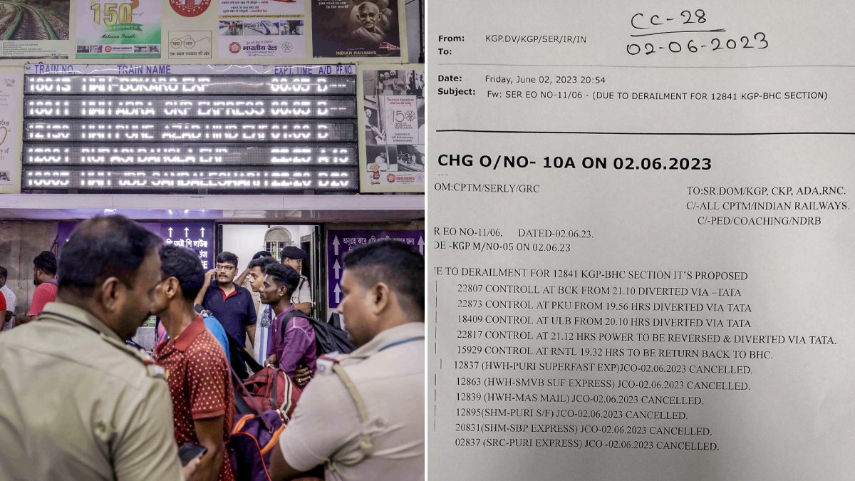 கொல்கத்தாவில் இருந்து புரி, சென்னைக்கு வரும் அனைத்து ரயில்களும் ரத்து செய்யப்பட்டுள்ளது. மேலும், ரயில் விபத்து எதிரொலியாக மேலும் 5 ரயில்கள் மாற்று பாதையில் இயக்கப்படும் என அறிவிக்கப்பட்டுள்ளது. 1 ரயில் திருப்பி அனுப்பப்பட்டுள்ளது.