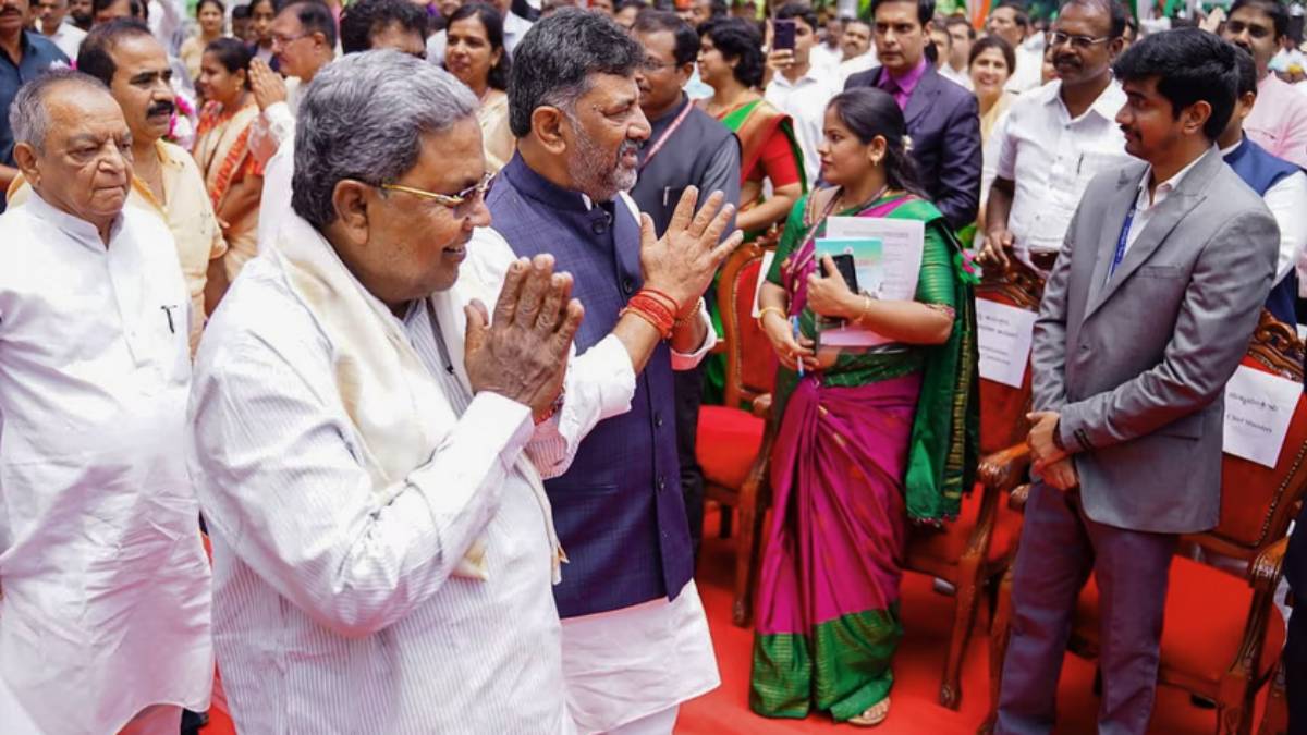 கர்நாடகா தேர்தலில் காங்கிரஸ் கட்சி 135 இடங்களில் வென்று அமோக வெற்றி பெற்றது. முதல்வராக சித்தராமையாவும் துணை முதல்வராக டிகே சிவகுமாரும் பதவியேற்றனர்.
