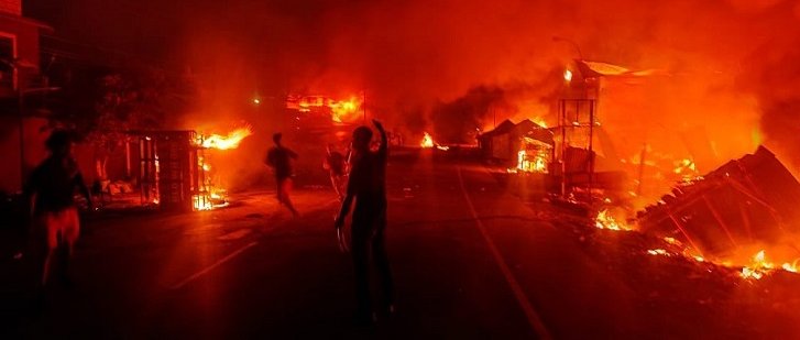 அப்போது திடீரென்று மோதல் ஏற்பட்டு வன்முறை வெடித்தது. சாலையில் டயர்களை தீயிட்டு எரித்ததோடு, கடைகள், வீடுகளுக்கும் தீவைக்கப்பட்டது. உடனடியாக போலீசார் தடியடி நடத்தினர். மேலும் கண்ணீர் புகை குண்டுகளை வீசி ஊர்வலத்தில் பங்கேற்றவர்களை கலைத்தனர்.