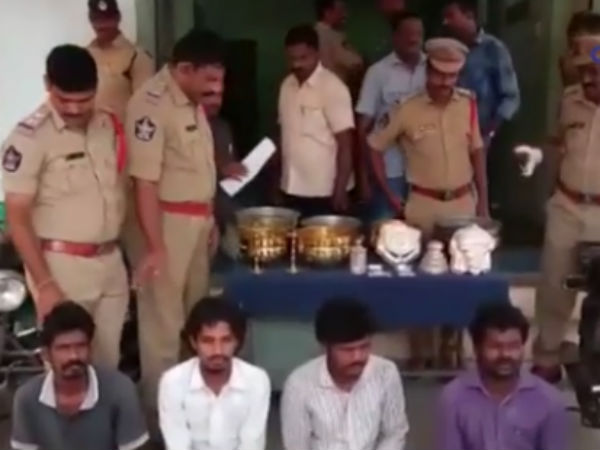 அப்போது சந்தேகத்துக்கிடமான நான்குபேரை காவல்துறையினர் கைது செய்து விசாரத்ததில் அவர்கள் உண்மையை ஒப்புக்கொண்டுள்ளனர். மேலும் அவர்களிடமிருந்து கோயில்களில் கொள்ளையடித்த தங்கம் மற்றும் வெள்ளியிலான பொருட்களும் பூஜை பாத்திரங்களும் கைப்பற்றப்பட்டுள்ளது.