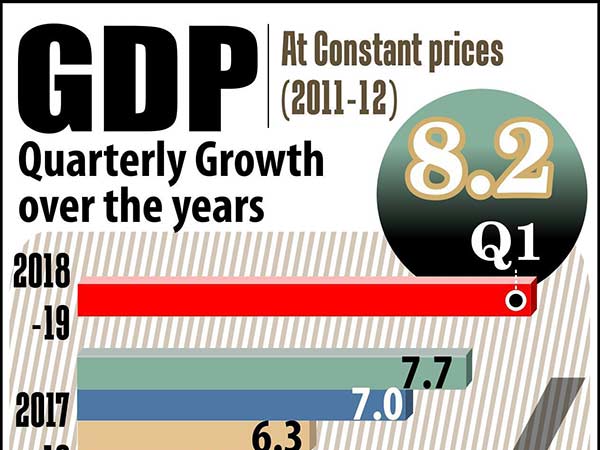 மும்பை: நாட்டின் மொத்த உள்நாட்டு உற்பத்தி (GDP) ஏப்ரல் முதல் ஜூன் வரையிலான, அதாவது நடப்பு நிதியாண்டின் முதல் காலாண்டில் 8.2 சதவீதம் வளர்ச்சியை அடைந்துள்ளது.