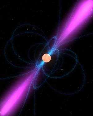 துடிப்பு விண்மீன்களுக்கு காந்தப்புலம் மிகவும் அதிகமாக இருக்கும். இந்த காந்தப்புலத்தின் இரு துருவங்களில் இருந்தும் அதிக எண்ணிக்கையிலான துகள்கள் வேகமாக வெளியேற்றப்படும்.