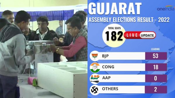 இன்றைய தினம் வாக்கு எண்ணிக்கை தொடங்கிய நிலையில் முதற்கட்டமாத தபால் வாக்குகள் எண்ணப்படுகிறது. அதில் 182 தொகுதிகளில் எண்ணப்பட்ட நிலையில் பாஜக 141 இடங்களிலும் காங்கிரஸ் கட்சி 28 இடங்களிலும் முன்னிலை வகித்து வருகிறது.