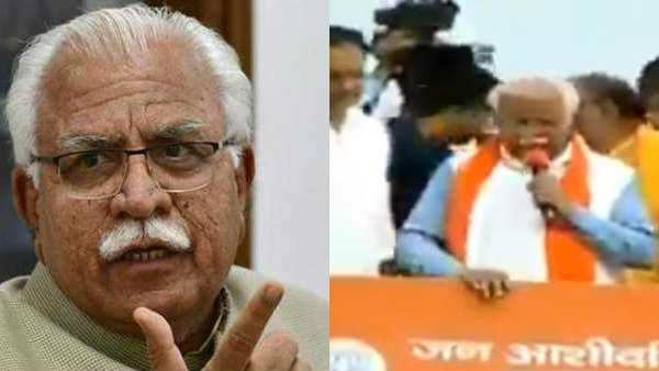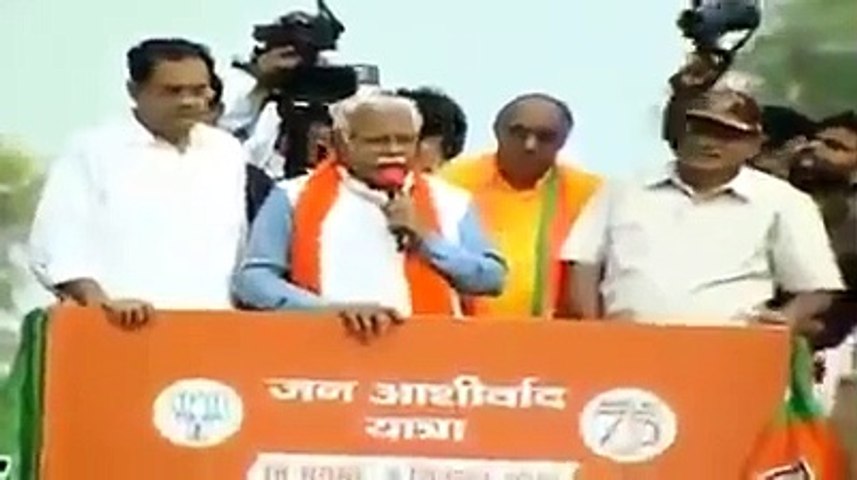ஹரியானாவில் ஜன் ஆசிர்வாத் யாத்ரா என்ற திட்டத்தை தொடங்கி வைத்த முதல்வர் மனோகர் லால் கட்டர் மினி லாரியில் மக்கள், தொண்டர்கள் முன் பேசினார்.