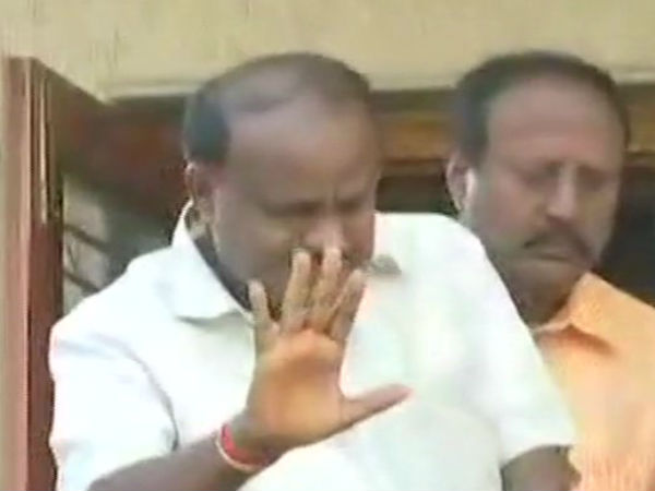 சுமார் 4 மணியளவில் வீட்டு மாடி, போர்டிகோ பகுதிக்கு வந்து, தொண்டர்களை பார்த்து மகிழ்ச்சியாக கையசைத்தார் குமாரசாமி. அவர்களை பார்த்து கும்பிட்டுவிட்டு வீட்டுக்குள் சென்றார்.