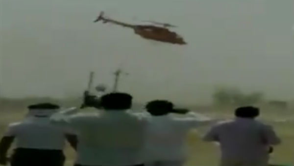 இதனால் தரையிலிருந்து புறப்பட்ட ஹெலிகாப்டரானது மேலெழும்ப முடியாமல் புறப்பட்ட சில அடி உயரத்திலேயே வட்டமடித்து சுழன்று சுழன்று பார்ப்பவர்களை பதைபதைக்க வைத்தது.