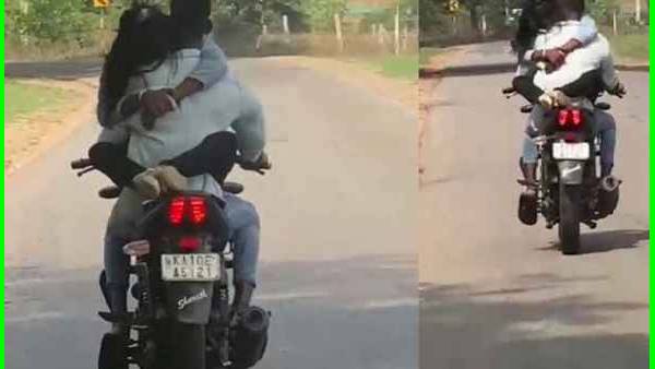சாம்ராஜ்நகர்: காலை தூக்கி காதலன் மீது போட்டு கொண்டு, முத்தம் கொடுத்து கொண்டே பைக்கில் செல்கிறார் ஒரு இளம்பெண்..!