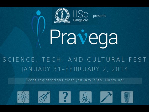 பெங்களூர்: பெங்களூரில் உள்ள ஐஐஎஸ்சி கல்வி நிறுவனம் பிரவேகா 2014 என்ற அறிவியல், தொழில்நுட்பம் மற்றும் கலாச்சார விழாவை நாளை முதல் பிப்ரவரி 2ம் தேதி வரை நடத்துகிறது.