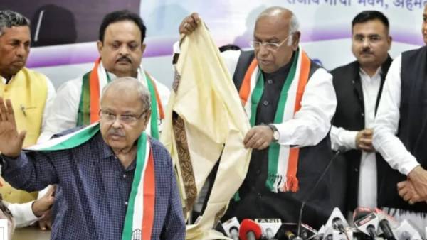 அகமதாபாத்தில் நடைபெற்ற நிகழ்ச்சியில் காங்கிரஸ் தலைவர் மல்லிகர்ஜூன கார்கே முன்னிலையில் ஜெய்நாராயண் வியாஸ் கட்சியில் இணைந்திருக்கிறார்.
