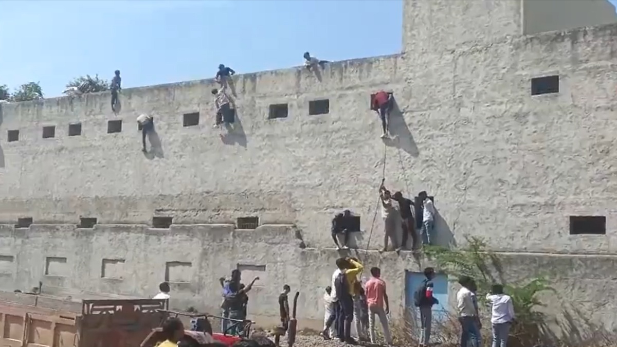 அதாவது பள்ளியின் காம்பவுண்ட் சுவர் மீது ஏறி ஜன்னலில் இருக்கும் துளைகள் வழியாக மாணவ -மாணவிகளுக்கு ‛பிட்' வழங்கி உள்ளனர். சிலர் கயிற்றின் உதவியோடு சுவர் மீது ஏறி ‛பிட்' வழங்கி உள்ளனர். இந்த சம்பவம் ஹரியானாவில் உள்ள நூ மாவட்டத்தில் நடந்துள்ளதாக கூறப்படுகிறது. இருப்பினும் அந்த மாவட்டத்தின் எந்த பள்ளியில் இத்தகைய தேர்வு முறைகேடு நடந்தது என்பது தெரியவில்லை.